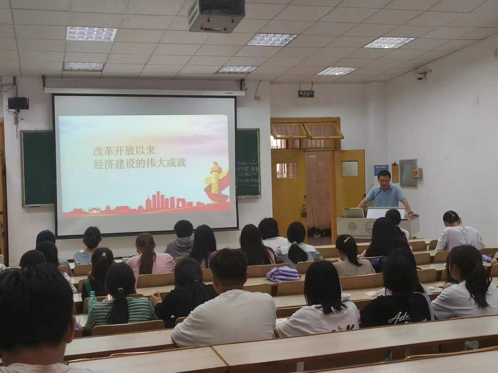 学院党委书记于明来向学院全体在校学生,共494人,讲授题为《深入学习领会党的二十大精神》的专题党课,从主题教育的总要求和根本任务出发,结合学院和学生实际,通过探讨世界百年未有之大变局下的“强国建设之问”“教育发展之问”“青年成长之问”,勉励青年学生肩负起时代赋予的伟大责任与历史使命,努力争做德智体美劳全面发展的有远见、有梦想、有抱负、有才华、有干劲的新时代“五有”青年。学院副院长张文香同志向学院全体教师,共50人,以《不忘初心牢记使命,认真做好教学工作》为题,从教育的初心使命、对教育事业的责任及对教师称谓的担当等三方面讲述作为新时代教师所承担的历史使命和责任。学院副书记副院长孙胜显同志向21级水产、水族专业学生,共60人,以《改革开放以来经济建设的伟大成就》为题带领大家回顾了改革开放以来我国的经济发展历程及取得的成就,讲述坚持党对一切工作的领导的重要性,呼吁大家将习近平新时代中国特色社会主义思想和经济学思维相结合,进行深入讨论和思考。