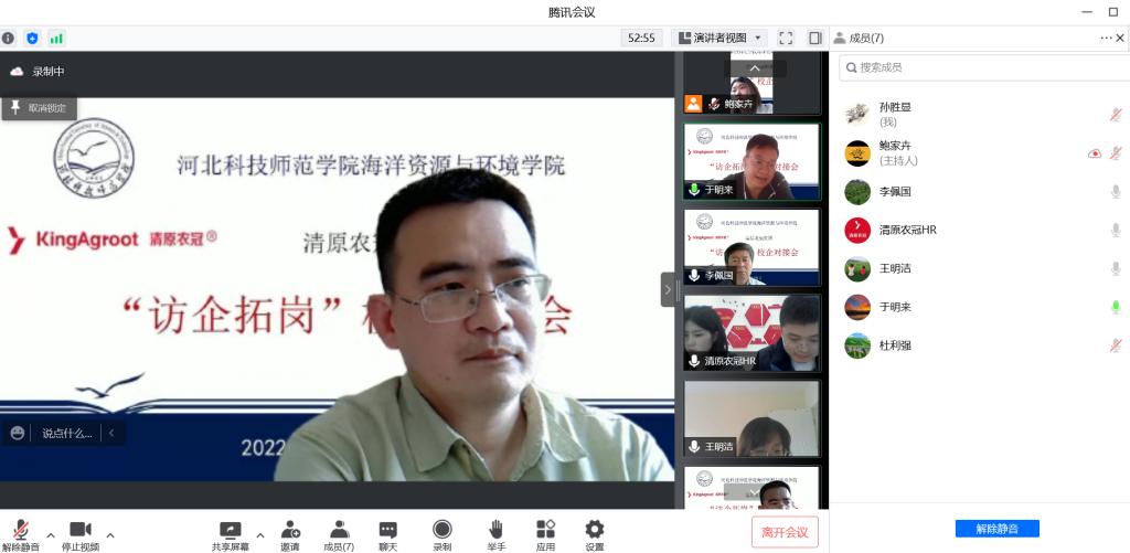 4月25日,今年会jinnian官网分别召开与山东宝来利生物工程股份有限公司、清原农冠集团访企拓岗座谈会。学校党委副书记李佩国、学院党委书记于明来、学院党委副书记孙胜显、学院副院长张文香、水产教学部主任葛慕湘、海洋生物资源教学部主任杜利强、2022届毕业生班主任、学工办就业负责人共同参加并作交流。会上,校企双方介绍了各自的情况,并针对行业需求、人才培养等方面开展了深入的交流