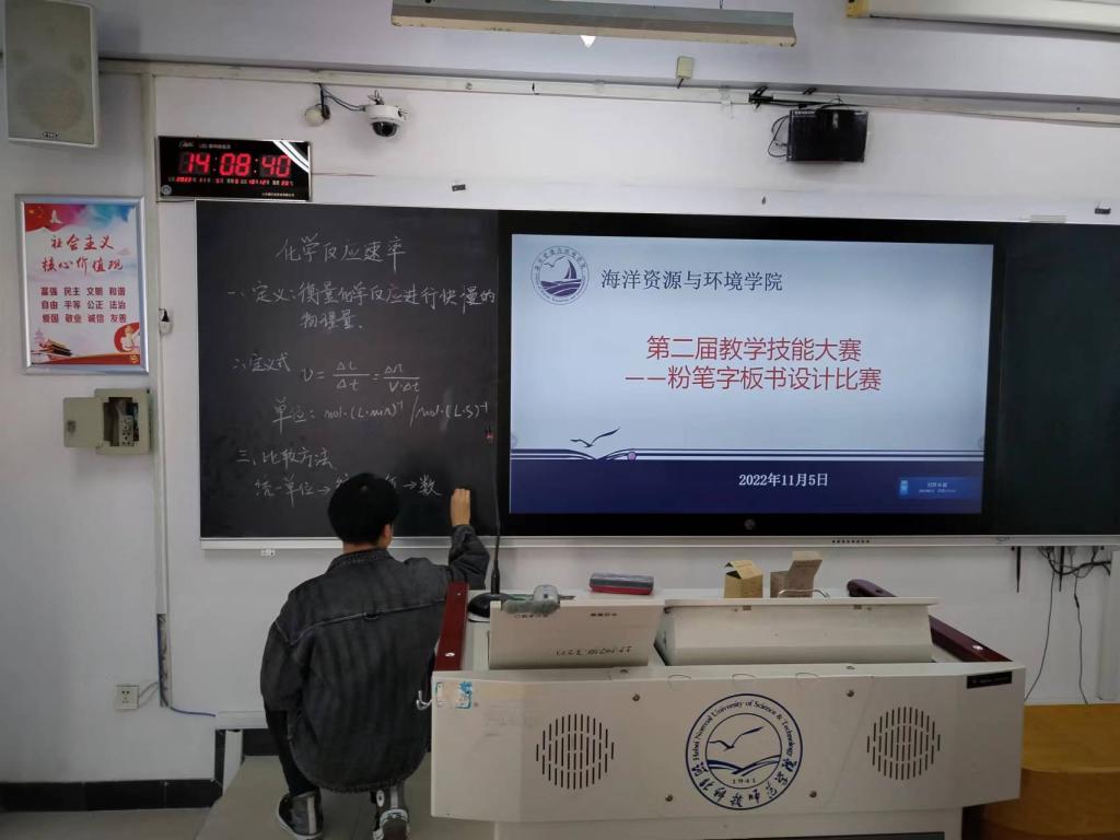 本届大赛共分为三个竞赛单元,分别为课件制作比赛、粉笔字板书设计比赛、讲课比赛,其中课件制作比赛通过作品提交的方式评选;粉笔字设计大赛和讲课比赛于11月5日在线下进行、现场评选,并通过线上同步直播。师范类专业同学参与热情高涨,共有48名同学报名参加,比赛中参赛选手用独具匠心的板书设计、课件设计、教学设计,以扎实娴熟的基本功和现代化的教学手段,充分体现了师范专业学生扎实的教学基本功和良好的精神风貌。