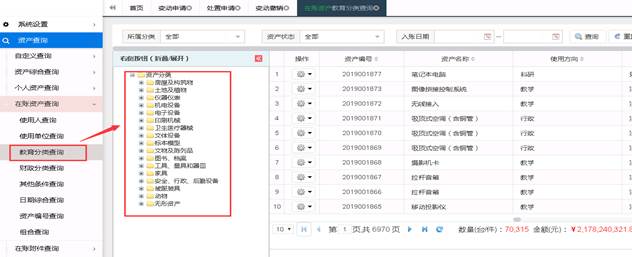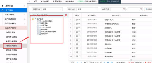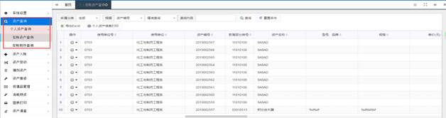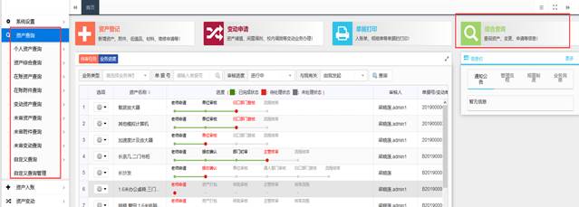 可供用户查询名下,以及管辖范围内的资产及分类情况。