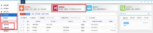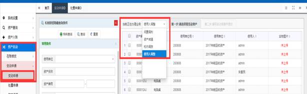 该功能可以对资产进行使用人调整、校内调拨和闲置调剂的申请。