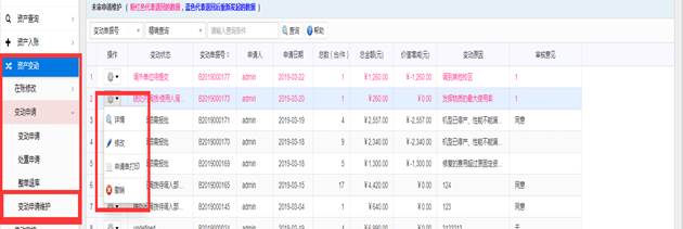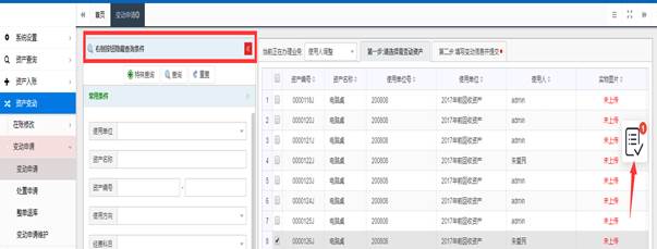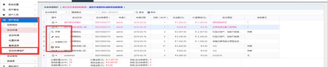 可以查询到未审核变动设备信息,具体操作与【在账资产】查询基本一致。