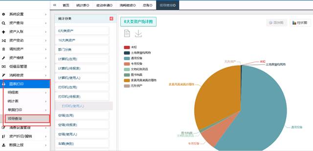 可以按财政部6+1大类查询资产信息,并可将查询结果导入到EXCEL中进行打印输出。