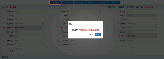 提示:页面中带“*”的资产属性是必填项。