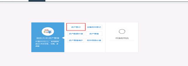点击首页快捷菜单“资产登记”或左侧“资产入账→资产登记” 菜单,都可以进入登记界面。