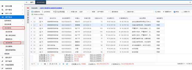 也可通过左侧菜单“资产变动→变动审核→变动终审”进行数据审核。