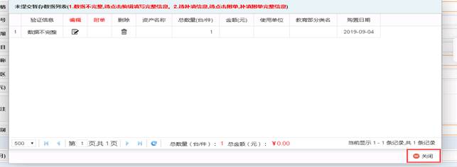 1)用途介绍:此功能主要用于解决老师在录入资产信息过程中因为其他原因终止录入,之后又需要补充完该条数据并进行提交审核的问题。