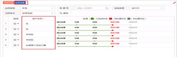 在资产业务办理提交后,可在【系统首页】的【业务进度】栏中查询所有与本账号相关业务的办理进度情况,并可查询该单据的“审核详情”、“单据详情”及对未通过上级部门审核的单据进行“撤销单据”操作。